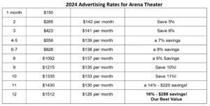 How to promote your business or organization on the Arena Theater Big Screen in 2024